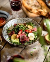 Убранство грузинского ресторанчика «Хочу Пури» - это собирательный образ грузинского дома. Здесь царит домашняя атмосфера. Просторный зал в светлых тонах, места разделены перегородками в форме кувшинов для вина. Нотку живописности привносят искусственные деревья. Над вытянутыми длинными столиками вдоль открытой кухни есть зелень, в самом интерьере — виды Грузии, искусственно состаренные зеркала в круглой оправе и картины. Над столиками висят лампы, напоминающие по форме шапки. Гости будут чувствовать себя комфортно, расположившись на уютных текстильных диванах.